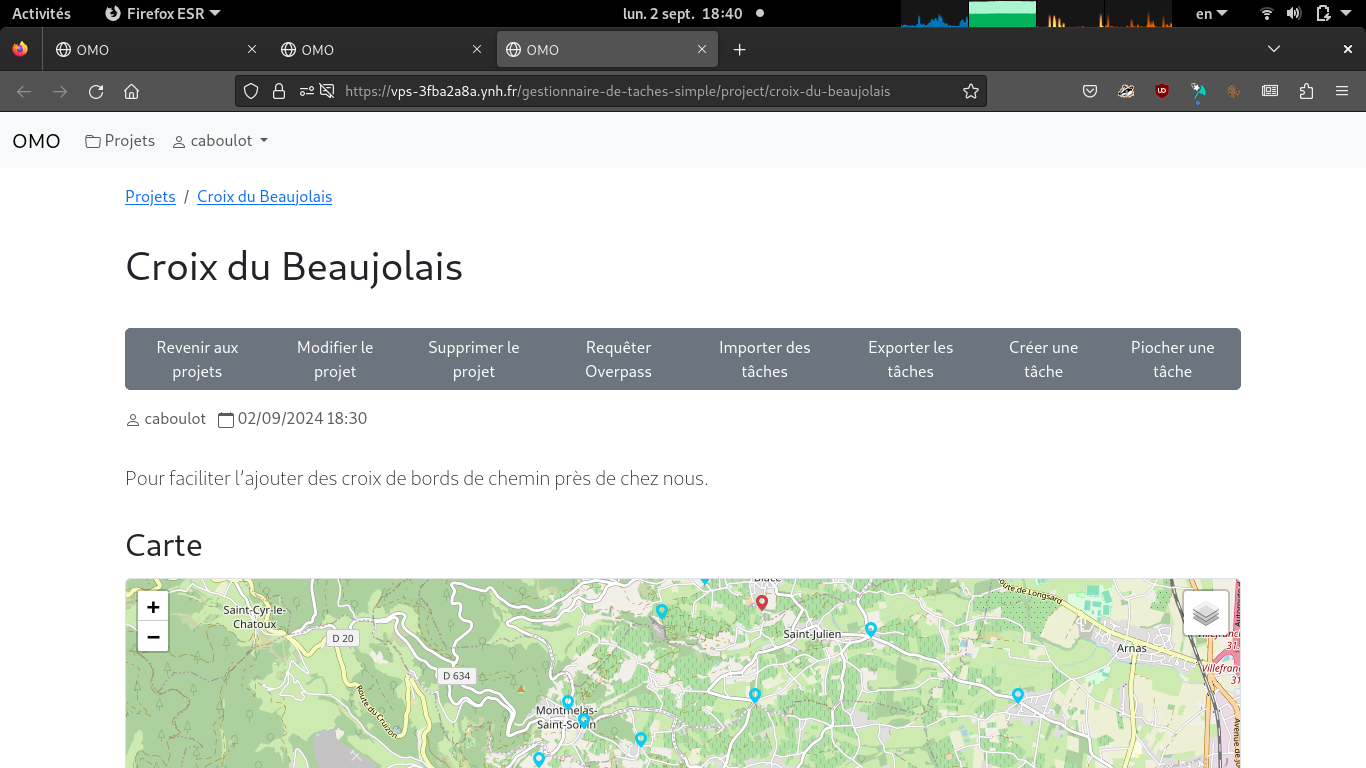 Le zoom de la carte est réglé sur les tâches et pas sur les données Overpass. Dans notre cas, pour voir la différence il faut un peu zommer en arrière car il y a peu de tâches.